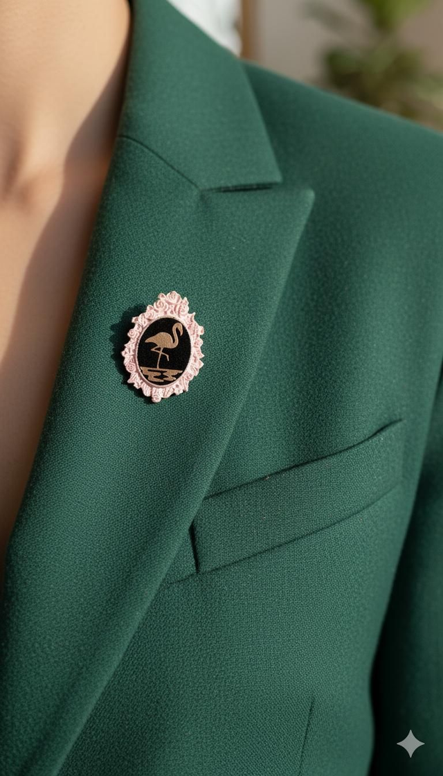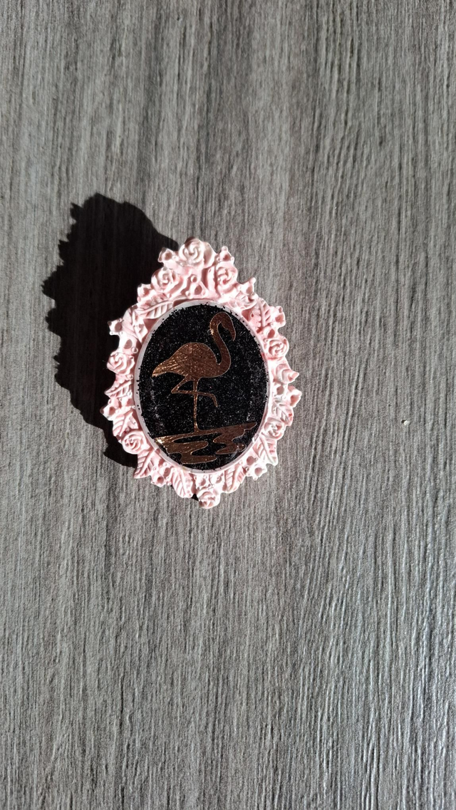 Broche flamant rose cuivré. STYLE CAMEE réalisée en jesmonite et resine uv. Ose le vintage moderne avec cette pièce unique !