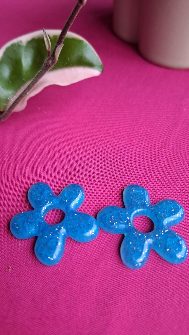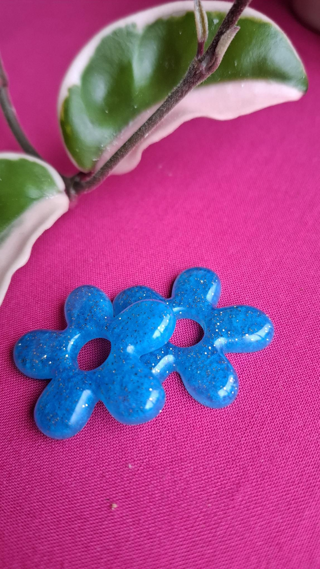 Recharge pour boucles d'oreilles interchangeable ! Ne rachète plus des boucles d oreilles entières, tu as déjà une paire de créoles il suffit d y glisser ta Recharge et te voilà avec une nouvelle paire ! Fleurs de 2.5cm de diamètre environ en resine bleue légèrement pailletée